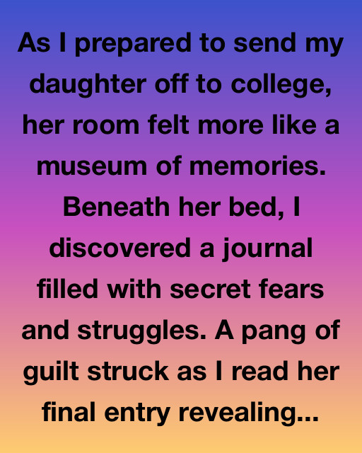 As I prepared to send my daughter off to college, her room felt more like a museum of memories. Beneath her bed, I discovered a journal filled with secret fears and struggles. A pang of guilt struck as I read her final entry revealing uncertainty about leaving home and fitting in at college.