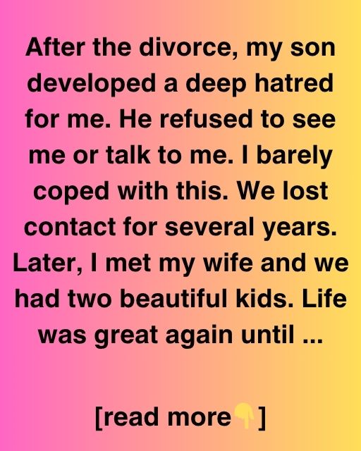 After the divorce, my son developed a deep hatred for me. He refused to see me or talk to me. I barely coped with this. We lost contact for several years. Later, I met my wife and we had two beautiful kids. Life was great again until my past came knocking harder than ever before.