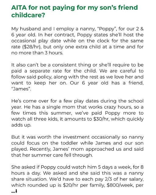 I nodded. โ€œI get that. And I want you to know โ€” we truly care about James. Heโ€™s a great kid. But $800 a week is just too much for us. Itโ€™s not a simple favor โ€” itโ€™s a major financial commitment.โ€
