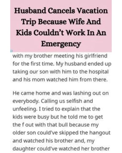 My Husband Canceled Our Entire Vacation Because No One Dropped Everything During A Family Emergency