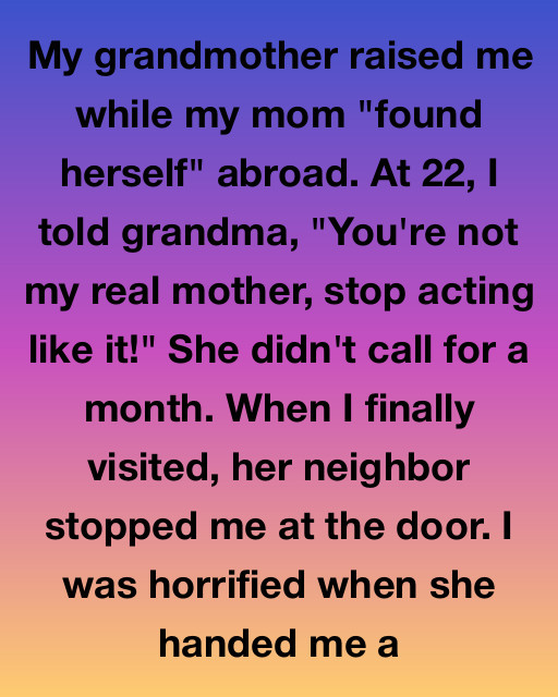 My Grandmother Raised Me, But I Told Her She Wasn’t My Real MomโThen Her Neighbor Gave Me A Letter That Shattered Me