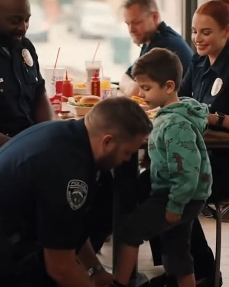 A Police Officer Helped A Little Boy Tie His ShoeโSeconds Later, Everyone In The Restaurant Froze