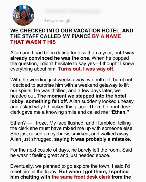 We Checked Into Our Vacation Hotel, And The Staff Called My Fiancรฉ By A Name That Wasnโt His