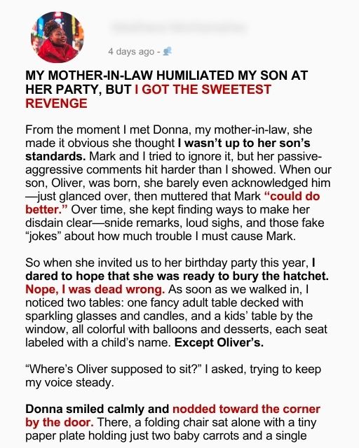 My Mother-In-Law Humiliated My Son At Her Party, But I Got The Sweetest Revenge