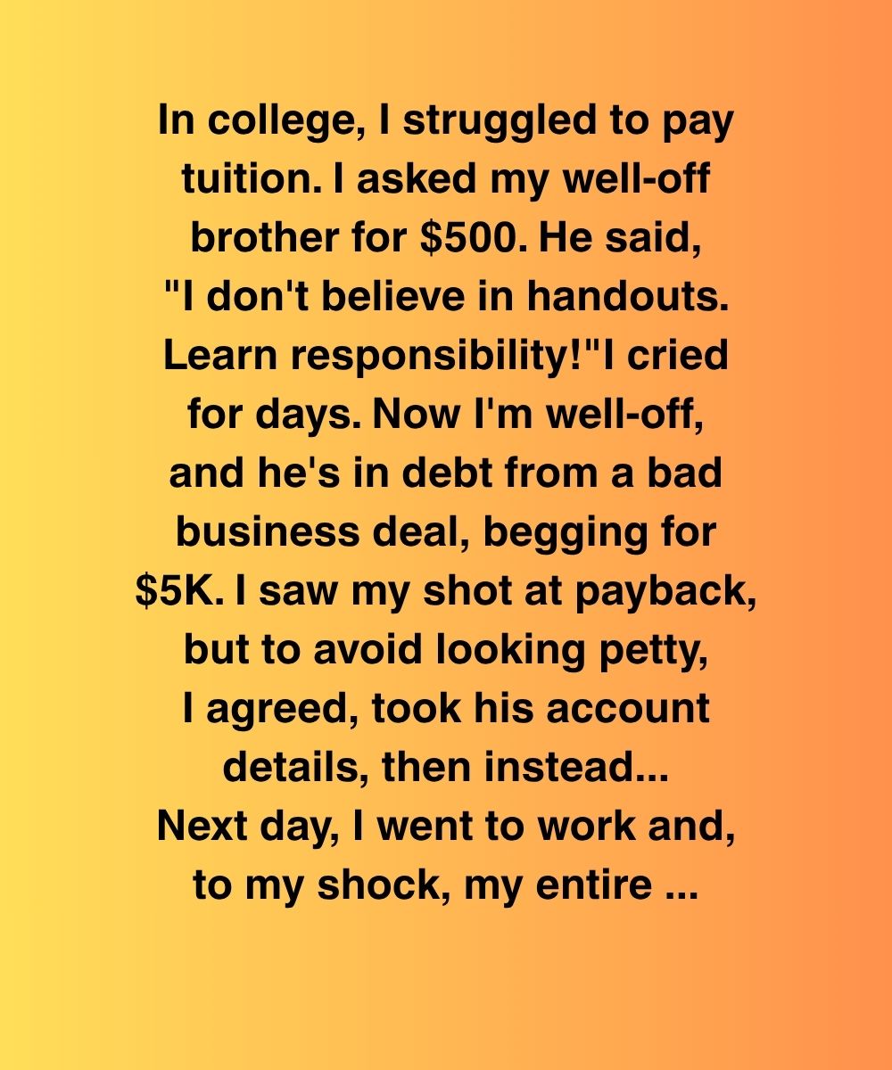 I Took My Brotherโs Bank Info to Help HimโBut Used It for Something Heโd Never Expect