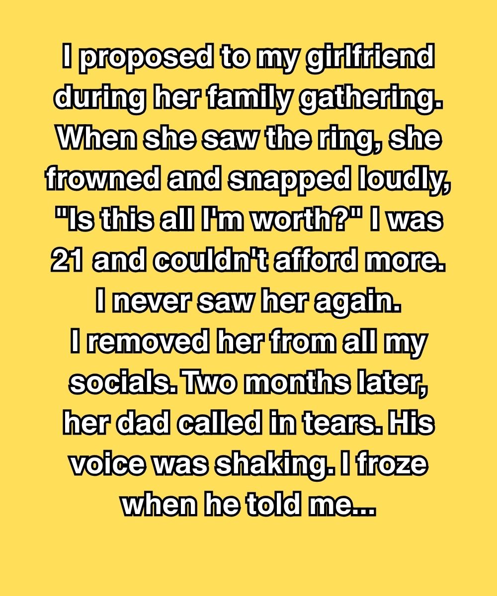 I Proposed At Her Family PartyโShe Laughed At The Ring, But Her Dad Called Me Later In Tears