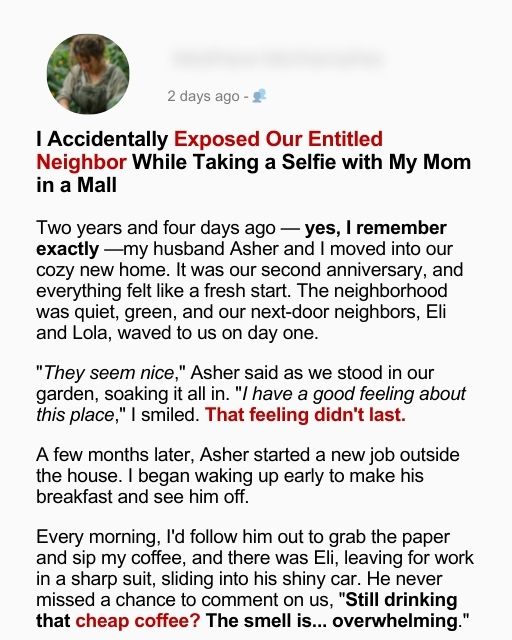 I Accidentally Exposed Our Entitled Neighbor While Taking a Selfie with My Mom in a Mall