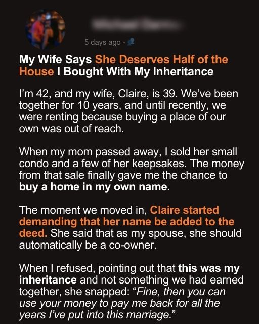My Wife Says She Deserves Half of the House I Bought With My Inheritance