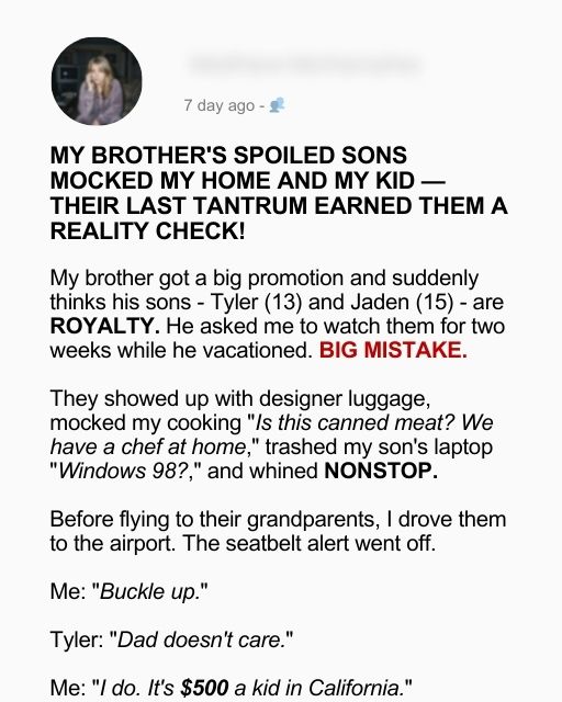My Brother’s Spoiled Sons Mocked My Home and My Kid โ Their Last Tantrum Earned Them a Reality Check!