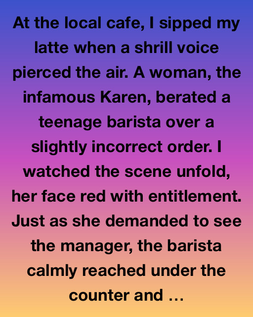 At the local cafe, I sipped my latte when a shrill voice pierced the air. A woman, the infamous Karen, berated a teenage barista over a slightly incorrect order. I watched the scene unfold, her face red with entitlement. Just as she demanded to see the manager, the barista calmly reached under the counter and pulled out a simple notepad and pen. With surprising poise, the young barista started writing something quickly, her hands moving purposefully across the paper.