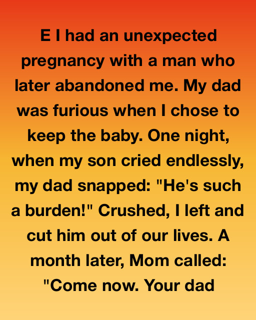 I had an unexpected pregnancy with a man who later abandoned me. My dad was furious when I chose to keep the baby. One night, when my son cried endlessly, my dad snapped: “He’s such a burden!”