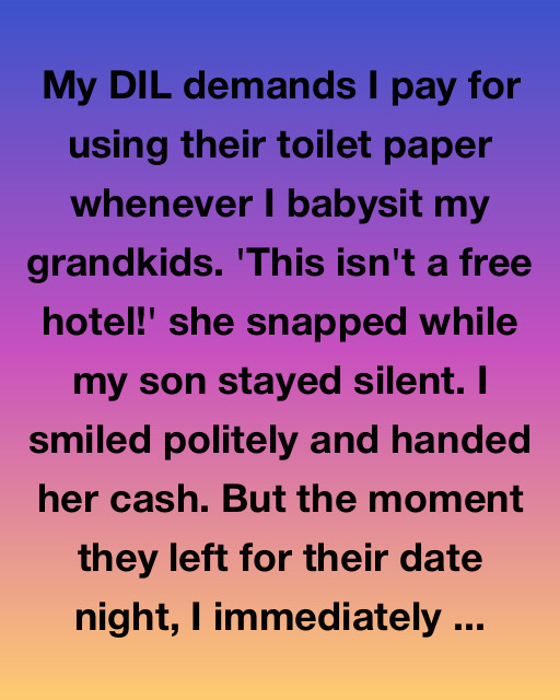 My DIL demands I pay for using their toilet paper whenever I babysit my grandkids. ‘This isn’t a free hotel!’ she snapped while my son stayed silent. I smiled politely and handed her cash. But the moment they left for their date night, I immediately knew something had to change.