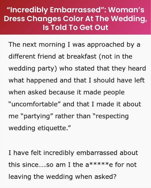 The next morning at the hotel breakfast, one of her friends told me I was “selfish” for staying. Said I made people “uncomfortable” and turned the wedding into a fashion show.