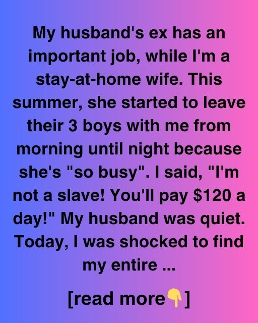 My husband’s ex has an important job, while I’m a stay-at-home wife. This summer, she started to leave their 3 boys with me from morning until night because she’s “so busy.” I said, “I’m not a slave! You’ll pay $120 a day!” My husband was quiet. Today, I was shocked to find my entire kitchen trashed, my favorite mug broken, and one of the boys had colored all over my living room wall with permanent marker.