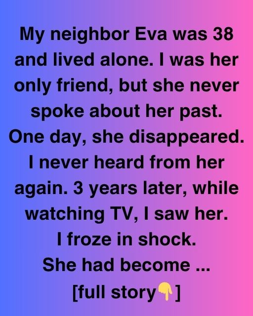 My neighbor Eva was 38 and lived alone. I was her only friend, but she never spoke about her past. One day, she disappeared. I never heard from her again. 3 years later, while watching TV, I saw her. I froze in shock. She had become the CEO of a fast-growing startup that everyone was suddenly talking about.