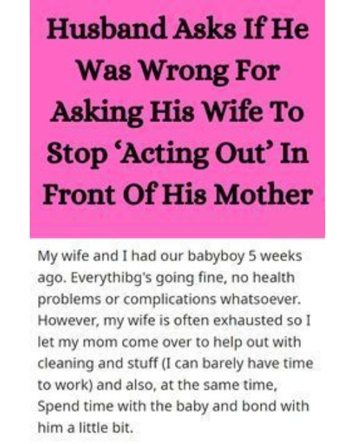 My Wife Just Had A Baby—But When My Mom Visits, She “Acts Out” And I Called Her On It