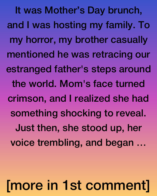 It was Mother’s Day brunch, and I was hosting my family. To my horror, my brother casually mentioned he was retracing our estranged father’s steps around the world. Mom’s face turned crimson, and I realized she had something shocking to reveal. Just then, she stood up, her voice trembling, and began to speak.