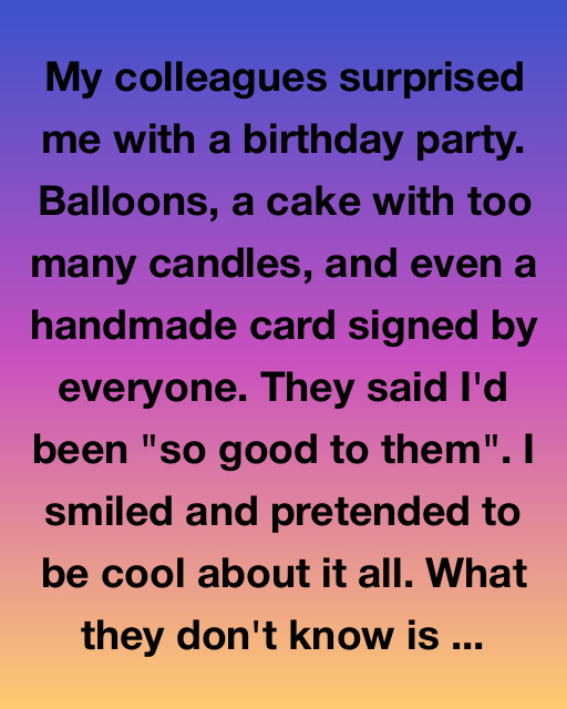 My colleagues surprised me with a birthday party. Balloons, a cake with too many candles, and even a handmade card signed by everyone. They said I’d been “so good to them”. I smiled and pretended to be cool about it all. What they don’t know is that this was the first birthday anyone had celebrated for me in years.