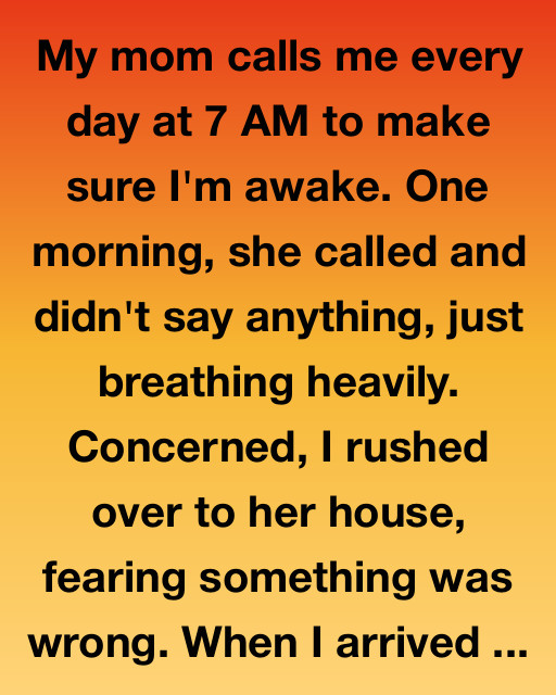 My mom calls me every day at 7 AM to make sure I’m awake. One morning, she called and didn’t say anything, just breathing heavily. Concerned, I rushed over to her house, fearing something was wrong. When I arrived, the door was unlocked, and my heart dropped.