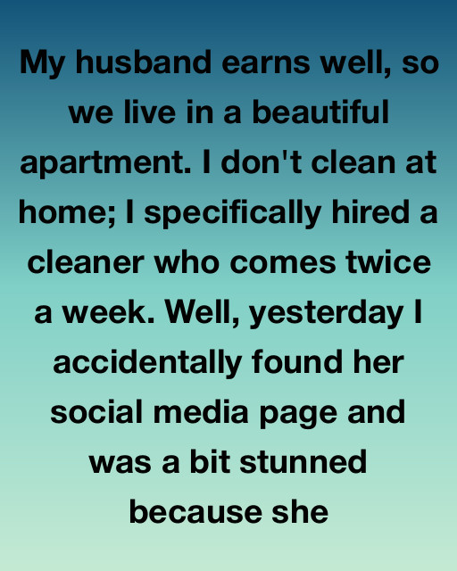 My husband earns well, so we live in a beautiful apartment. I don’t clean at home; I specifically hired a cleaner who comes twice a week. Well, yesterday I accidentally found her social media page and was a bit stunned because she was posting photographs of a life that looked far more luxurious and exclusive than my own, a life that hinted at millions, not minimum wage.
