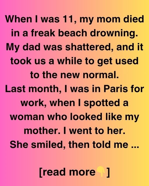 The next morning, I called my dad. I told him I met someone who looked exactly like Mom. He was quiet for a long time, then said, “You’ve been under a lot of stress. Maybe you’re seeing what you want to see.” I almost believed him, but then I remembered the scar. I didn’t mention that part to him.