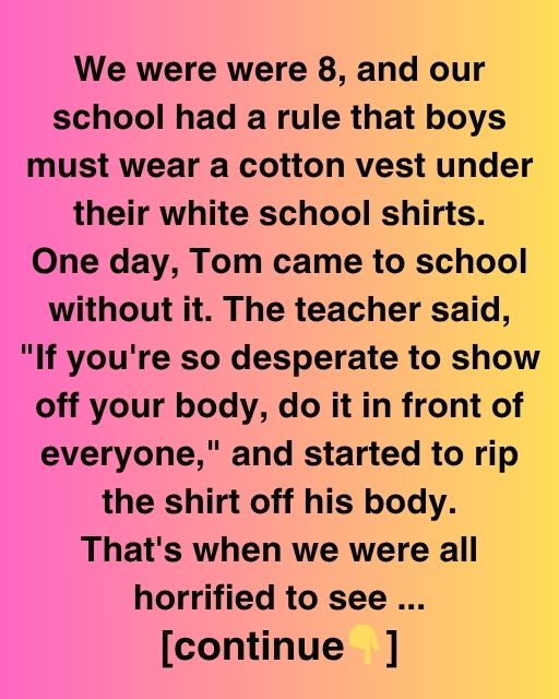 It was silent. You could hear the ceiling fan spin above us. None of us knew what to do, and even the teacher just stood there, holding the torn shirt in one hand, frozen. It wasnโt just a bruise or twoโTomโs back looked like someone had used it as a punching bag.