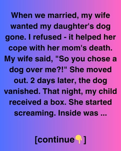 When we married, my wife wanted my daughter’s dog gone. I refused โ€” it helped her cope with her mom’s death. My wife said, “So you chose a dog over me?!” She moved out.
