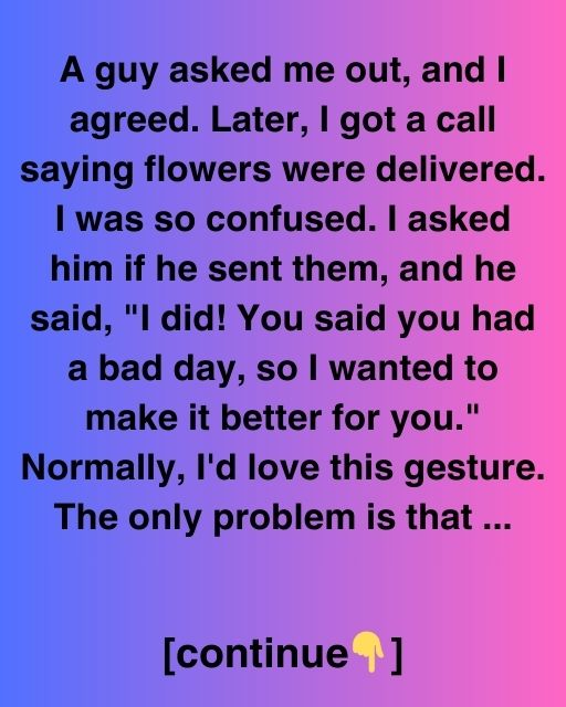 A guy asked me out, and I agreed. Later, I got a call saying flowers were delivered. I was so confused. I asked him if he sent them, and he said, “I did! You said you had a bad day, so I wanted to make it better for you.” Normally, I’d love this gesture. The only problem is that I never told him I had a bad day.