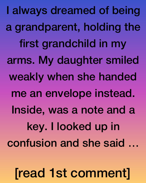 I always dreamed of being a grandparent, holding the first grandchild in my arms. My daughter smiled weakly when she handed me an envelope instead. Inside, was a note and a key. I looked up in confusion and she said, “Dad, there’s something I want you to see before I become a mom.”