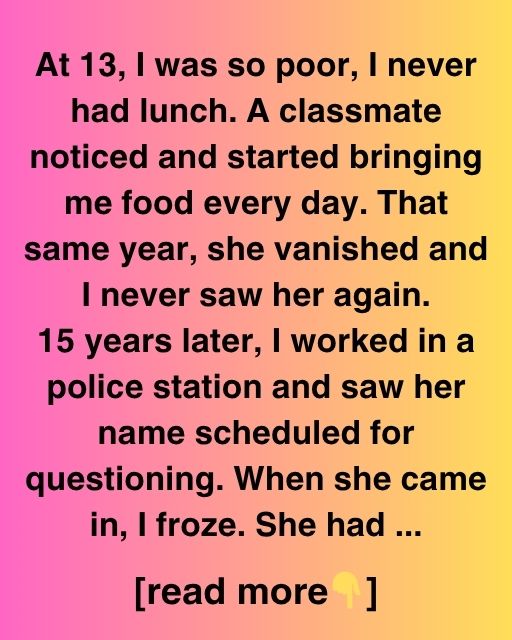 At 13, I was so poor, I never had lunch. A classmate noticed and started bringing me food every day. That same year, she vanished and I never saw her again. 15 years later, I worked in a police station and saw her name scheduled for questioning. When she came in, I froze. She had the same red lunchbox.