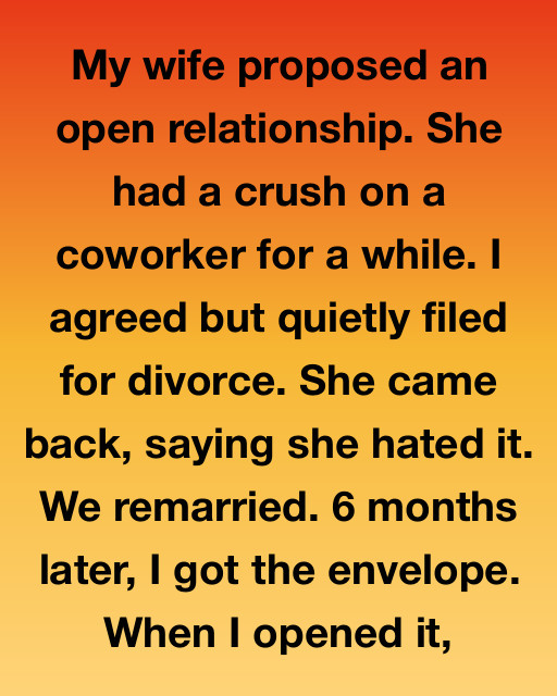 I finally understood why she had been so desperate to come back and remarry. She hadn’t hated the open relationship; she had abandoned the test because she realized I was about to divorce her anyway, proving my commitment wasn’t tied to the comfortable life she provided, but to my integrity. She simply couldn’t bear to let me walk away and then discover I had become independently wealthy while she was left alone with her guilt.