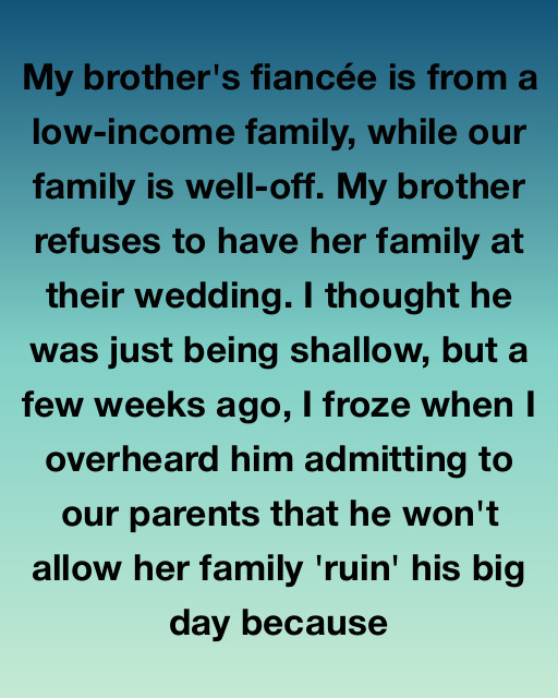 My brother’s fiancรฉe, Maria, is from a low-income family, while our family is well-off. We live in a wealthy suburb outside Chicago, and our parents have always enjoyed a certain level of social prestige. Maria is absolutely lovelyโ€”kind, sharp, and entirely devoted to my brother, Arthurโ€”but her familyโ€™s life is marked by struggle and financial instability. They live in a small, remote town in rural Illinois and rely heavily on manual labor and seasonal work.