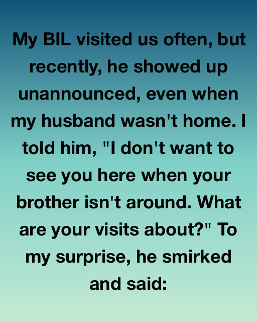 I told him, “I don’t want to see you here when your brother isn’t around. What are your visits about?” I stood firmly in the doorway, blocking his entrance, keeping my voice low and steady to signal the seriousness of the boundary I was setting. I made it clear that his unannounced presence felt disrespectful to me and to my privacy.