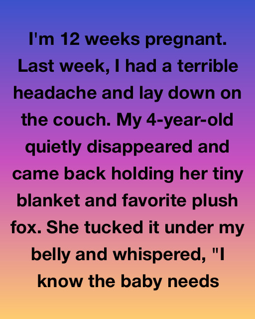 I’m 12 weeks pregnant. Last week, I had a terrible headache and lay down on the couch. My 4-year-old quietly disappeared and came back holding her tiny blanket and favorite plush fox.