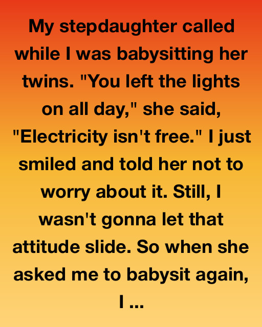 My stepdaughter called while I was babysitting her twins. โYou left the lights on all day,โ she said, โElectricity isnโt free.โ I just smiled and told her not to worry about it. Still, I wasnโt gonna let that attitude slide. So when she asked me to babysit again, I said yes โ but I had a plan in mind.