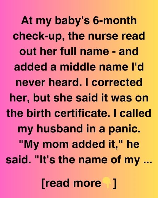 At my baby’s 6-month check-up, the nurse read out her full name – and added a middle name I’d never heard. I corrected her, but she said it was on the birth certificate. I called my husband in a panic. “My mom added it,” he said. “It’s the name of my grandmother. I thought you’d be okay with it.”
