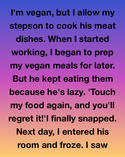 I’m vegan, but I allow my stepson to cook his meat dishes. When I started working, I began to prep my vegan meals for later. But he kept eating them because he’s lazy. ‘Touch my food again, and you’ll regret it!’ I finally snapped. The next day, I entered his room and froze. I saw my stepson, Liam, meticulously labeling and organizing a vast collection of my stolen containers, and taped to the wall, a complex food scarcity chart.