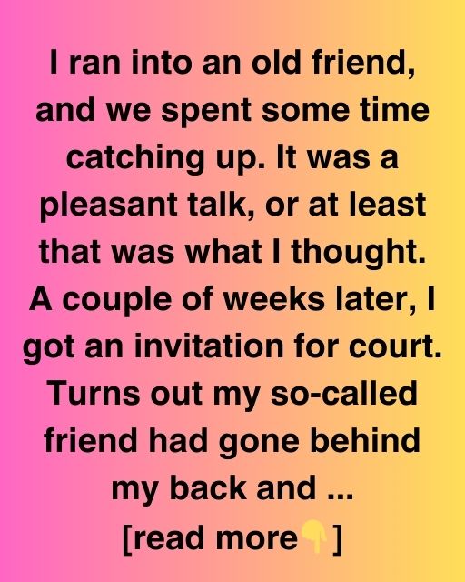 I ran into an old friend, and we spent some time catching up. It was a pleasant talk, or at least that was what I thought. A couple of weeks later, I got an invitation for court. Turns out my so-called friend had gone behind my back and filed a lawsuit against me.