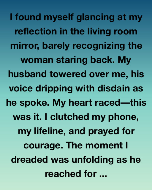 I found myself glancing at my reflection in the living room mirror, barely recognizing the woman staring back. My husband towered over me, his voice dripping with disdain as he spoke. My heart racedโthis was it. I clutched my phone, my lifeline, and prayed for courage. The moment I dreaded was unfolding as he reached for the TV remote, his gaze dark and foreboding.