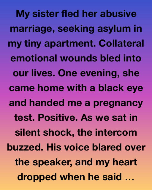 My sister fled her abusive marriage, seeking asylum in my tiny apartment. Collateral emotional wounds bled into our lives. One evening, she came home with a black eye and handed me a pregnancy test. Positive. As we sat in silent shock, the intercom buzzed. His voice blared over the speaker, and my heart dropped when he said he was coming up to see her.