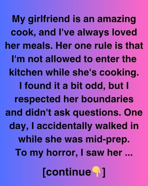 My girlfriend is an amazing cook, and I’ve always loved her meals. Her one rule is that I’m not allowed to enter the kitchen while she’s cooking. I found it a bit odd, but I respected her boundaries and didn’t ask questions.