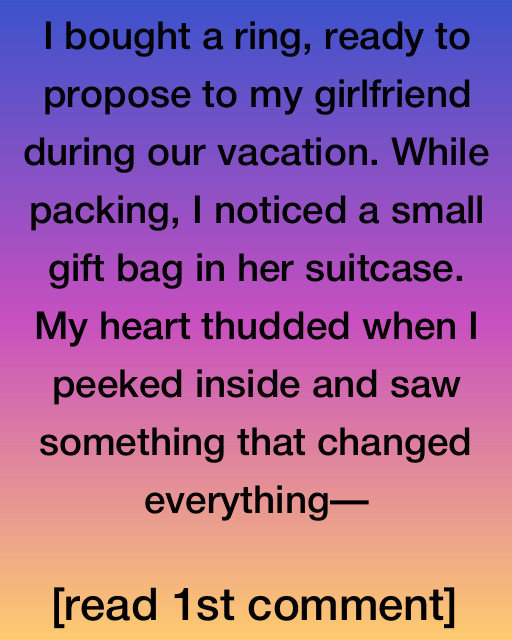 I bought a ring, ready to propose to my girlfriend during our vacation. While packing, I noticed a small gift bag in her suitcase. My heart thudded when I peeked inside and saw something that changed everythingโthere was a ring, similar to the one I had.