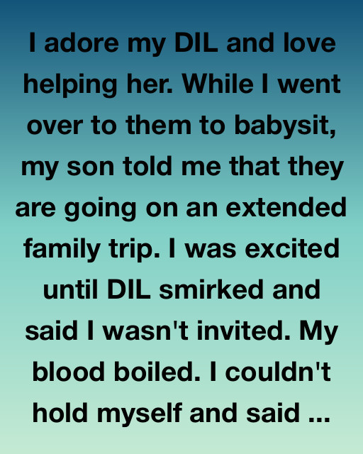 I adore my DIL and love helping her. While I went over to them to babysit, my son told me that they are going on an extended family trip. I was excited until DIL smirked and said I wasn’t invited. My blood boiled. I couldn’t hold myself and said, “I’m sorry, what do you mean I’m not invited? I thought this was a family trip.”