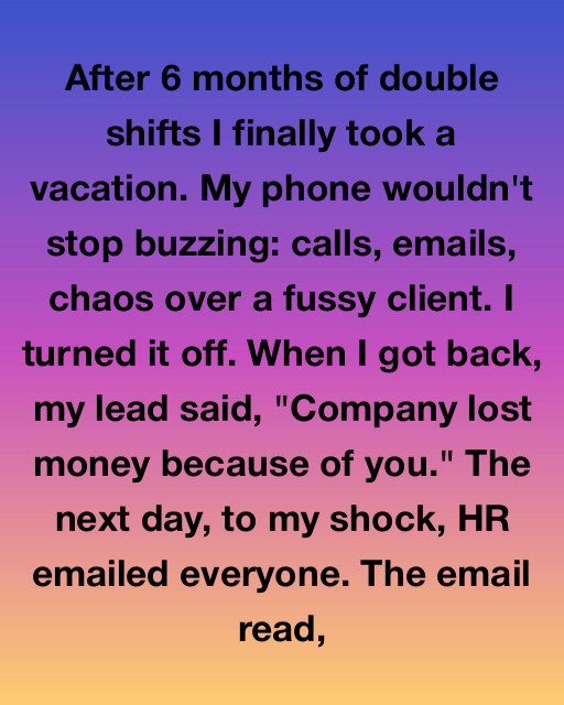 After six brutal months of overtime and weekend calls, I finally took a break. I flew out, no laptop, just a book and some peace. But my phone buzzed nonstopโ€”texts, missed calls, โ€œurgentโ€ emails from work.