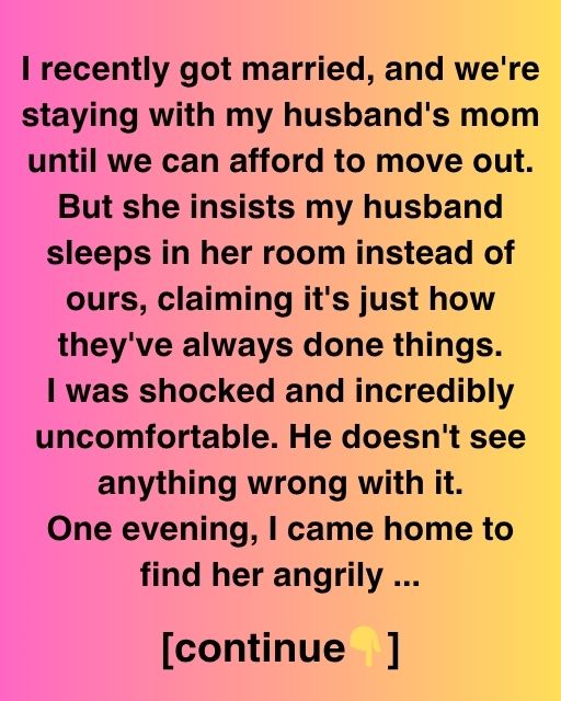 I recently got married, and we’re staying with my husband’s mom until we can afford to move out. But she insists my husband sleeps in her room instead of ours, claiming it’s just how they’ve always done things. I was shocked and incredibly uncomfortable. He doesn’t see anything wrong with it.