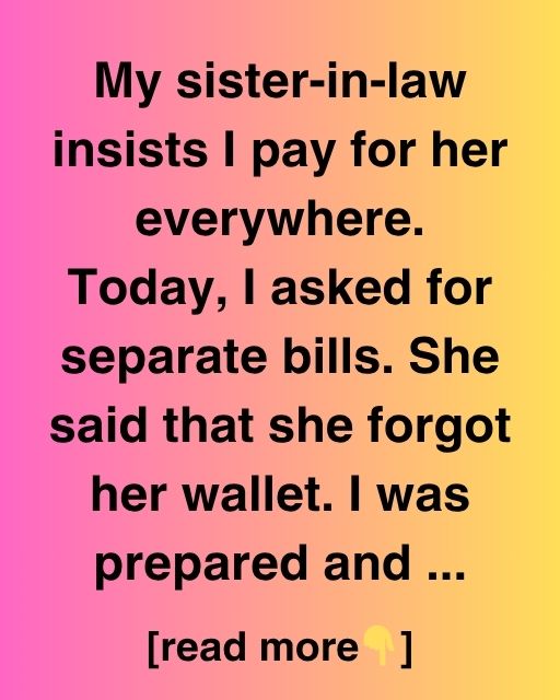 My sister-in-law insists I pay for her everywhere. Today, I asked for separate bills. She said that she forgot her wallet. I was prepared and told her, “That’s okay, I’ll wait while you go get it.” Her face dropped like she wasn’t expecting me to call her bluff.